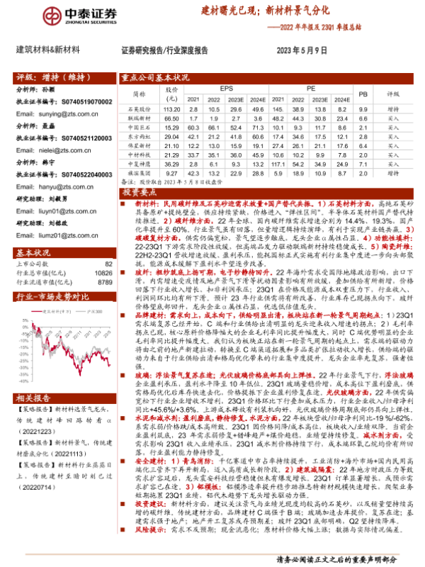 【中泰证券】【20230509】建筑材料&新材料2022年年报及23Q1季报总结-58页