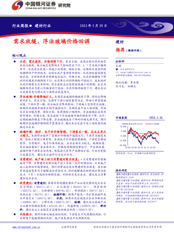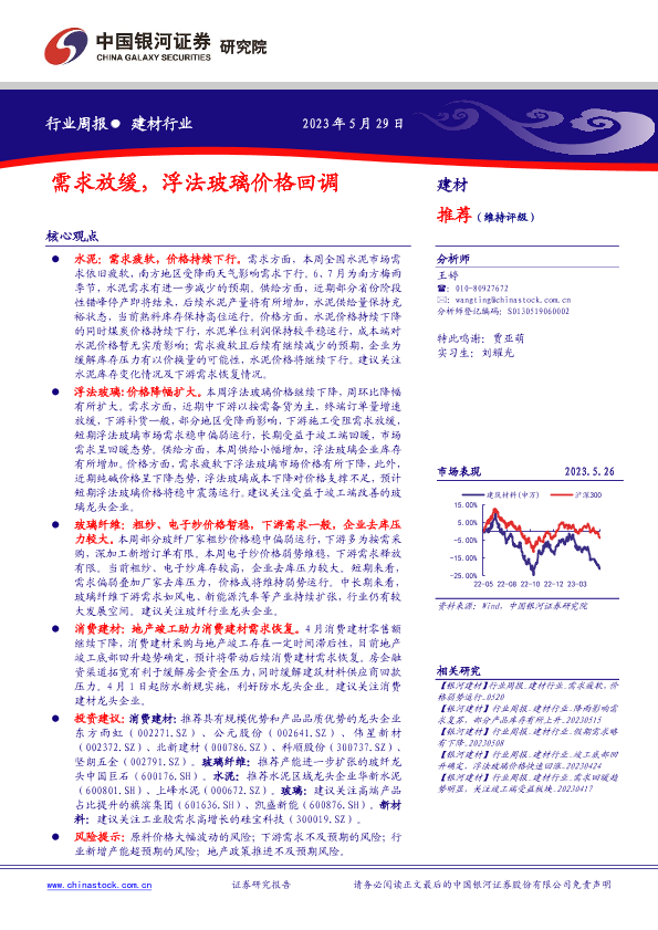 【银河证券】【20230529】建材行业行业周报:需求放缓,浮法玻璃价格回调-12页