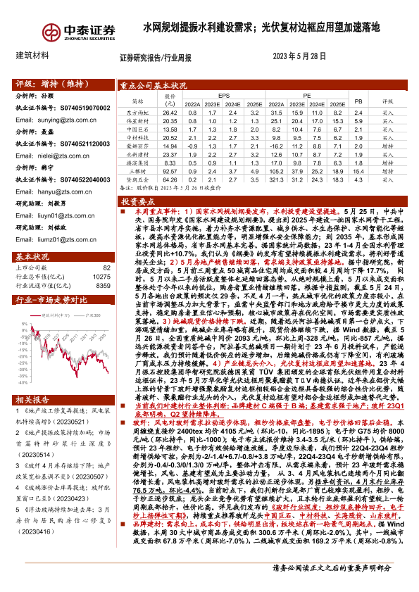 【中泰证券】【20230528】建筑材料行业周报:水网规划提振水利建设需求;光伏复材边框应用望加速落地-24页