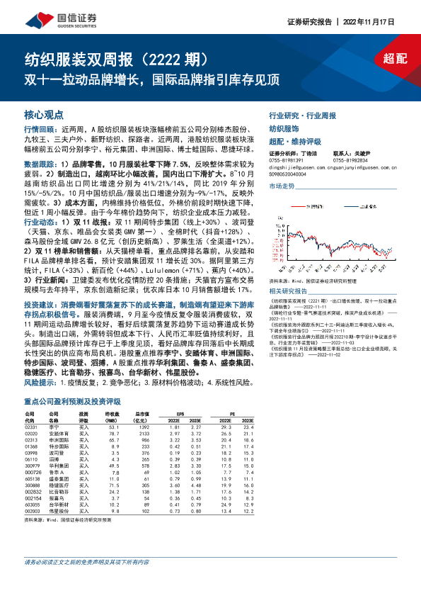 【国信证券】【20221117】纺织服装双周报(2222期):双十一拉动品牌增长,国际品牌指引库存见顶-17页