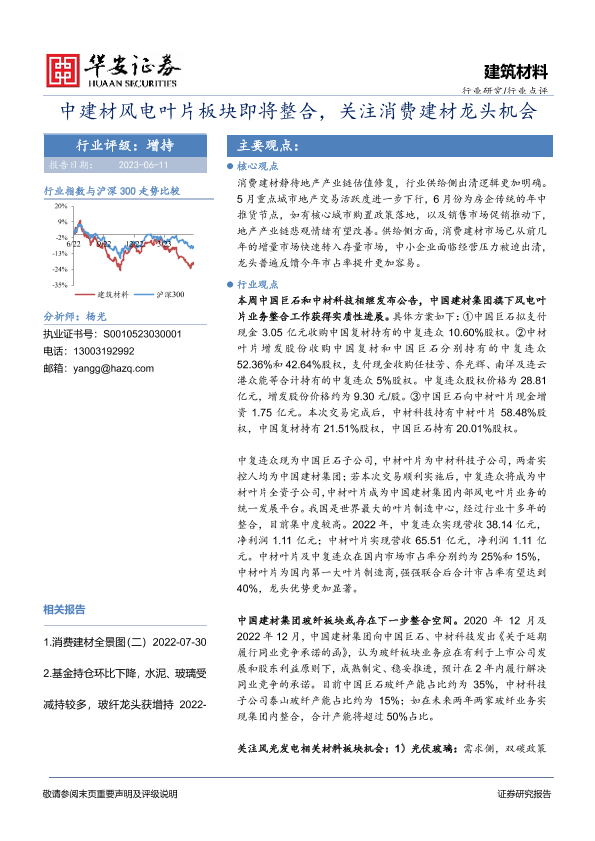 【华安证券】【20230611】中建材风电叶片板块即将整合,关注消费建材龙头机会-20页