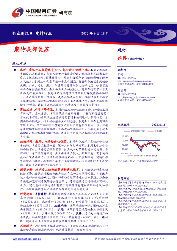 【银河证券】【20230619】建材行业周报:期待底部复苏-12页