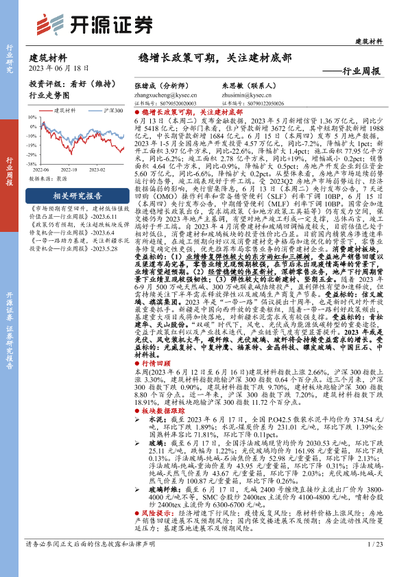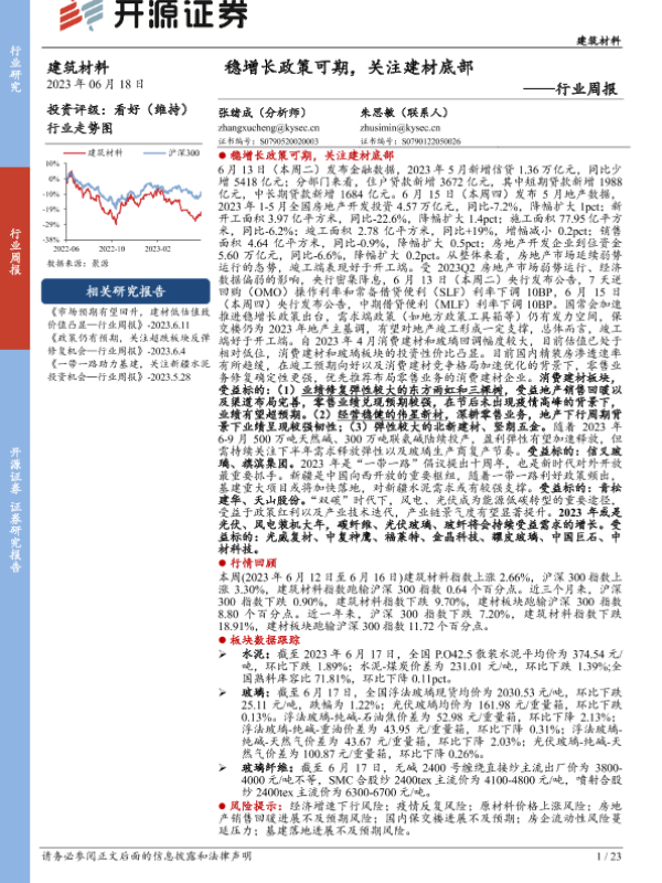 【开源证券】【20230618】建筑材料行业周报:稳增长政策可期,关注建材底部-23页