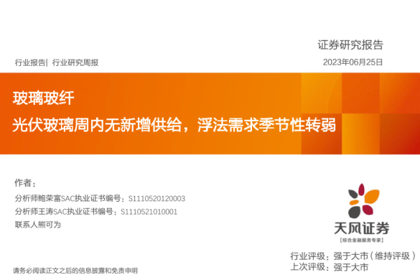 【天风证券】【20230625】玻璃玻纤行业研究周报:光伏玻璃周内无新增供给,浮法需求季节性转弱-18页