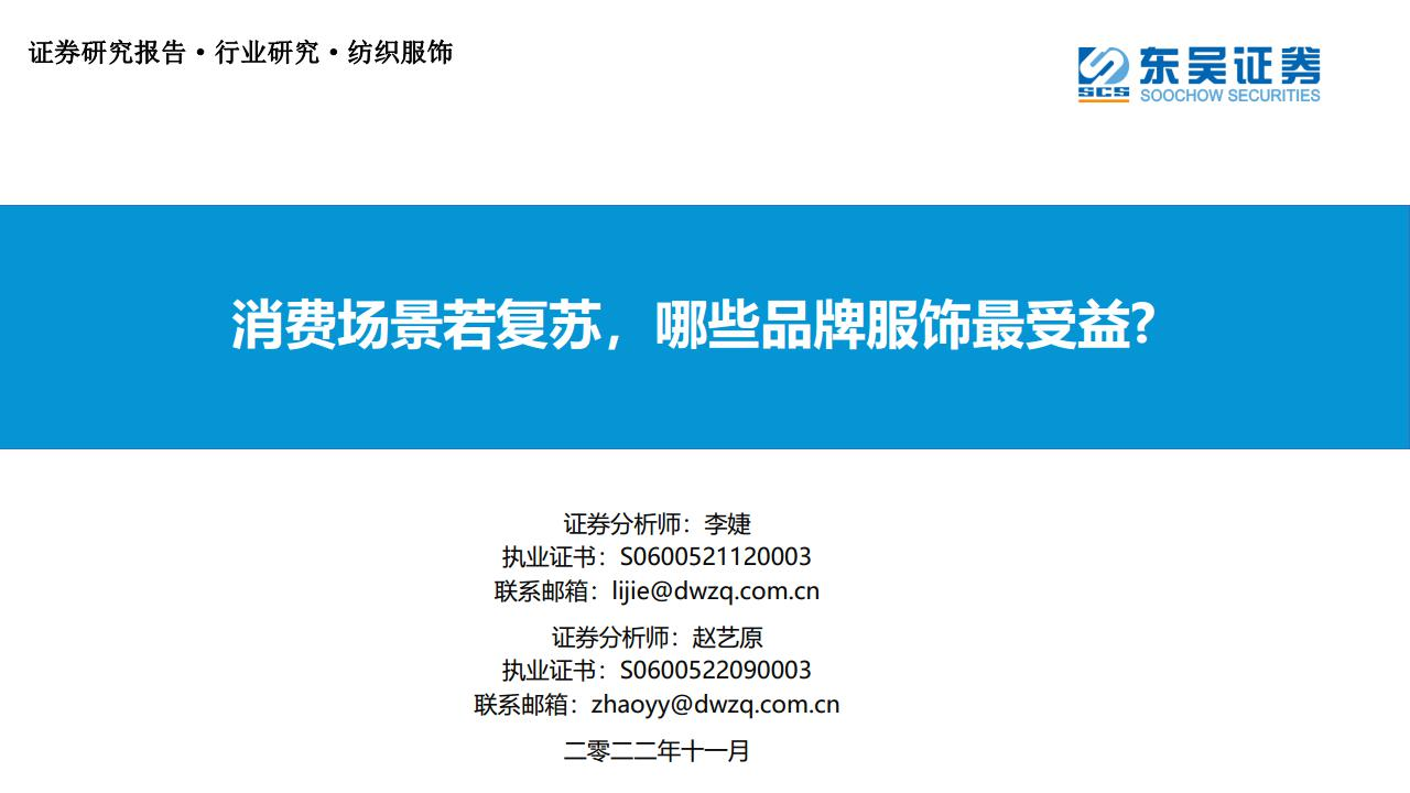 【东吴证券】【20221118】消费场景若复苏,哪些品牌服饰最受益?-29页