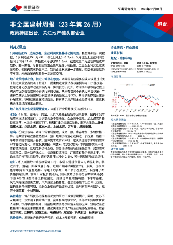 【国信证券】【20230703】非金属建材周报:政策持续出台,关注地产链头部企业-22页