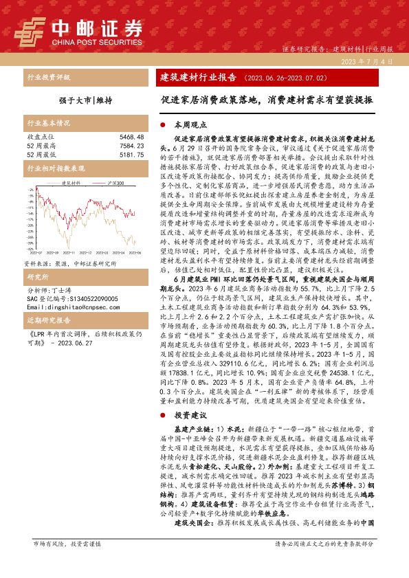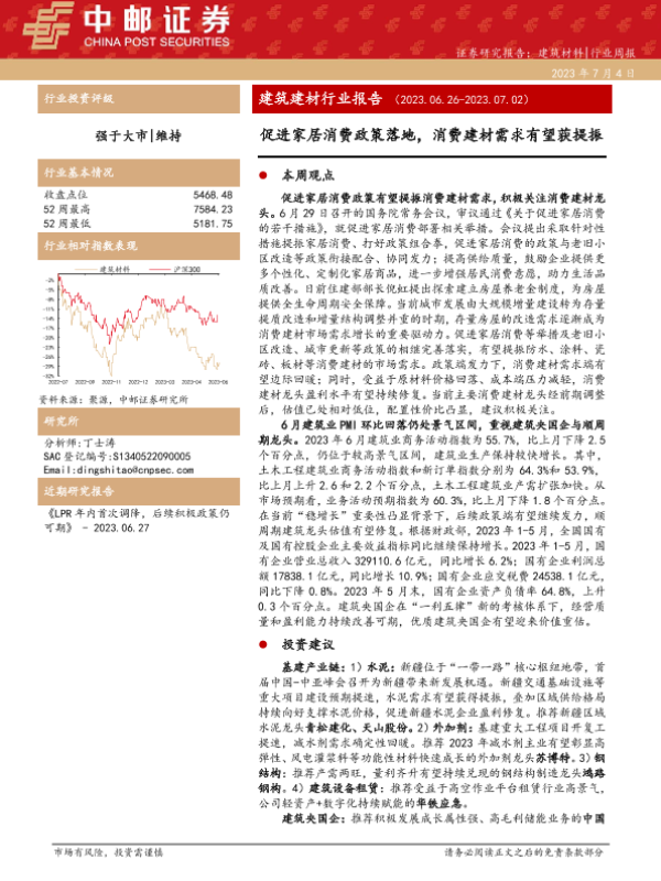 【中邮证券】【20230704】建筑建材行业报告:促进家居消费政策落地,消费建材需求有望获提振-25页