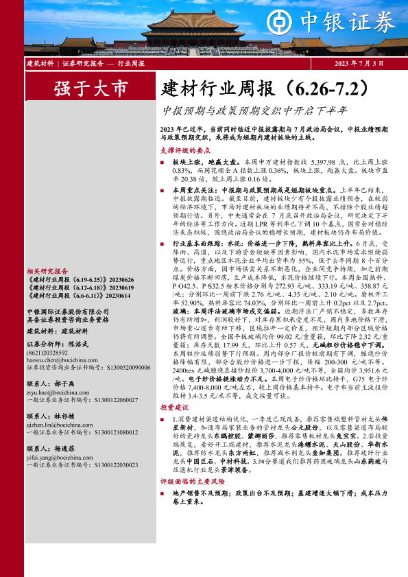【中银证券】【20230703】建材行业周报:中报预期与政策预期交织中开启下半年-21页