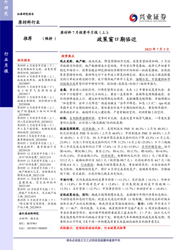 【兴业证券】【20230703】原材料7月投资半月报(上):政策窗口期临近-26页