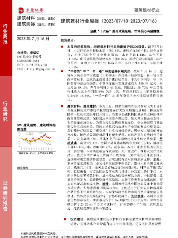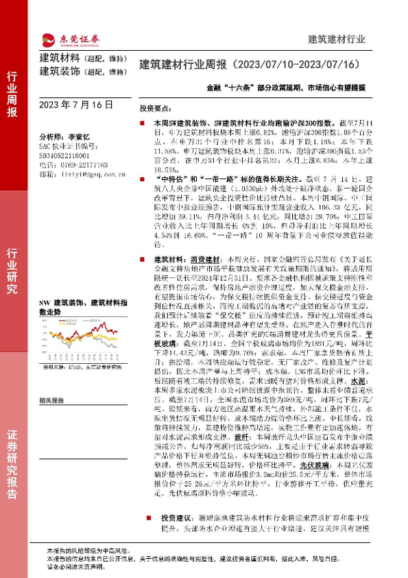 【东莞证券】【20230716】建筑建材行业周报:金融“十六条”部分政策延期,市场信心有望提振-16页