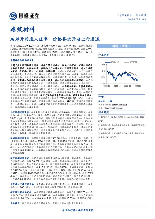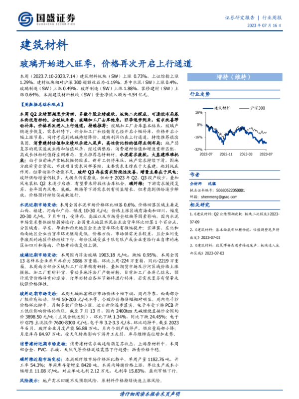 【国盛证券】【20230716】建筑材料行业周报:玻璃开始进入旺季,价格再次开启上行通道-16页