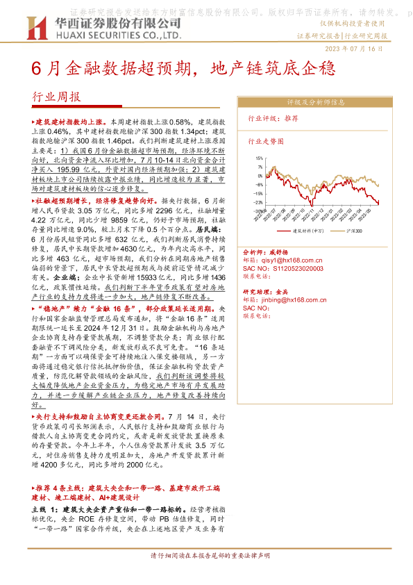 【华西证券】【20230716】6月金融数据超预期,地产链筑底企稳-17页
