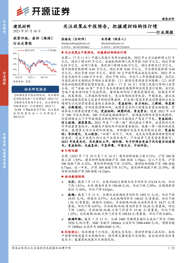 【开源证券】【20230716】建筑材料行业周报:关注政策&中报预告,把握建材结构性行情-23页