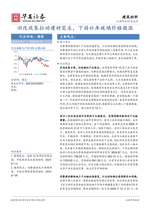 【华安证券】【20230723】旧改政策拉动建材需求,下游补库玻璃价格微涨-22页