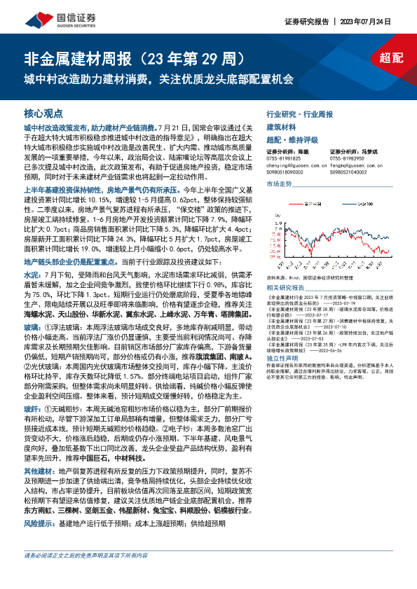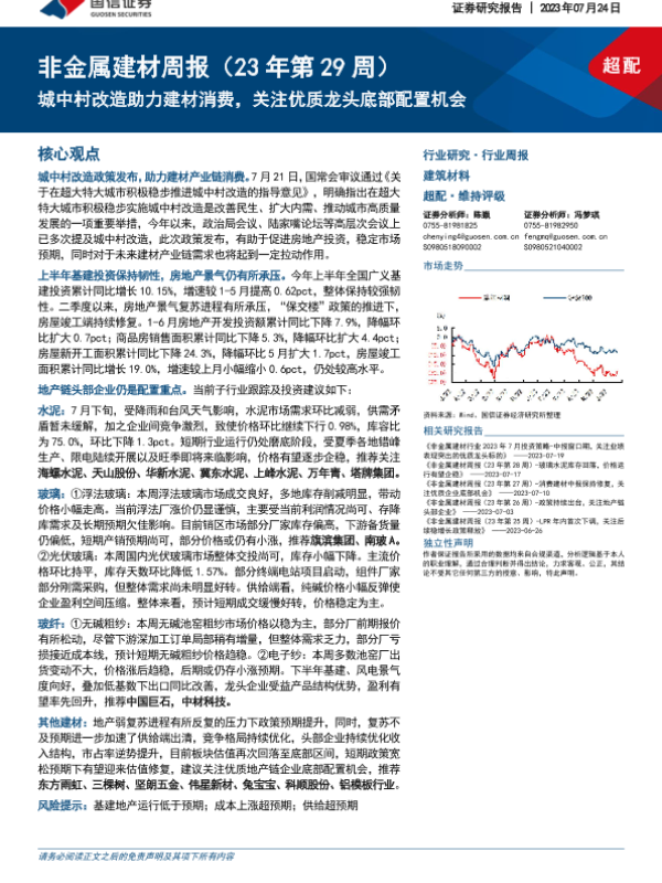 【国信证券】【20230724】非金属建材周报:城中村改造助力建材消费,关注优质龙头底部配置机会-22页