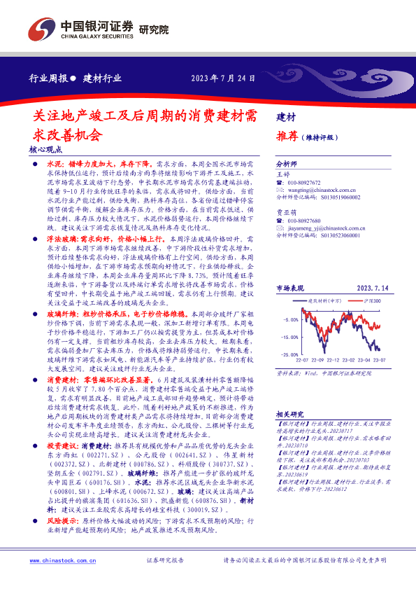 【银河证券】【20230724】建材行业行业周报:关注地产竣工及后周期的消费建材需求改善机会-13页