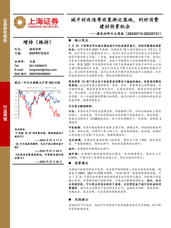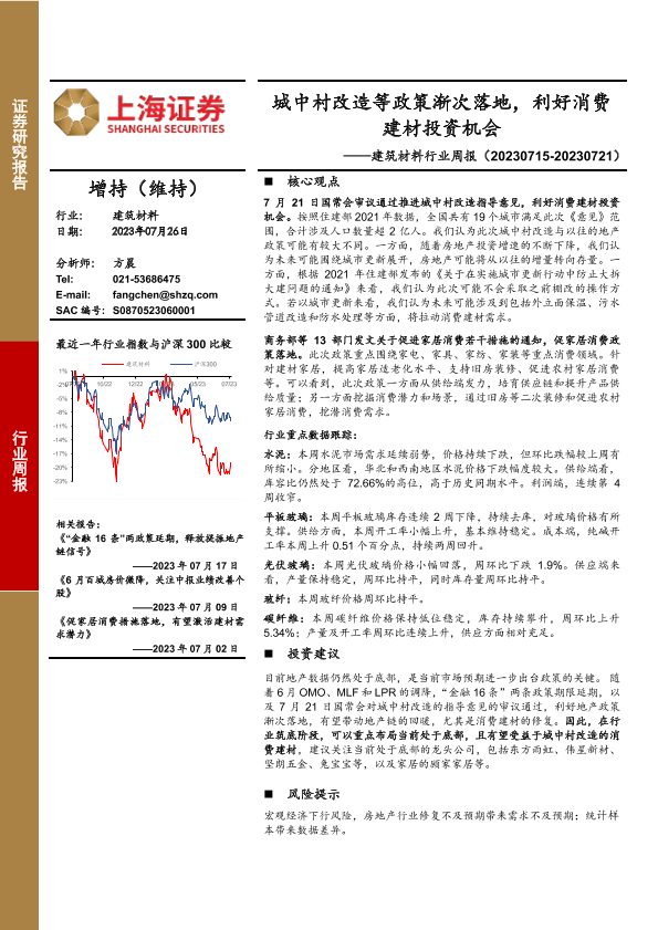 【上海证券】【20230726】城中村改造等政策渐次落地,利好消费建材投资机会-13页