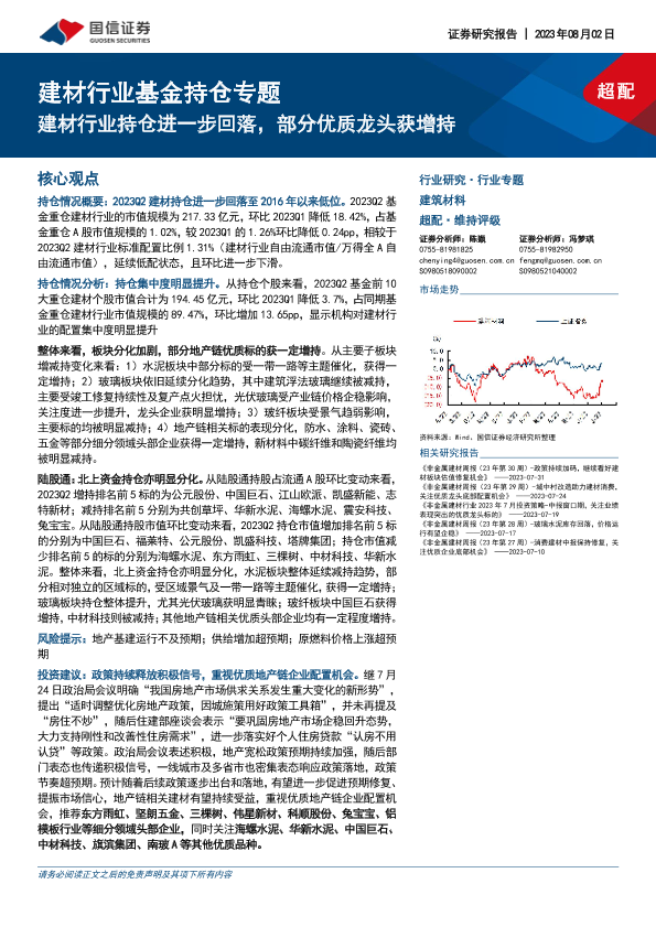 【国信证券】【20230802】建材行业基金持仓专题:建材行业持仓进一步回落,部分优质龙头获增持-15页