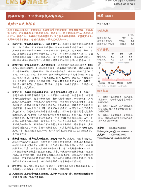 建材行业 水泥 消费建材 玻璃 玻纤