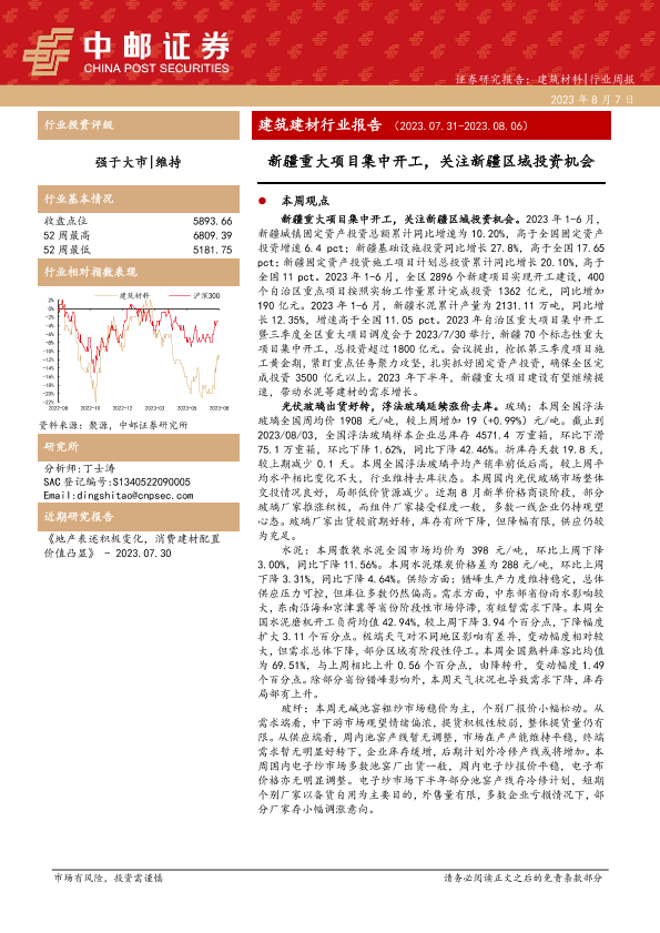 【中邮证券】【20230807】建筑建材行业报告:新疆重大项目集中开工,关注新疆区域投资机会-24页