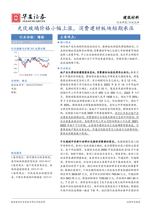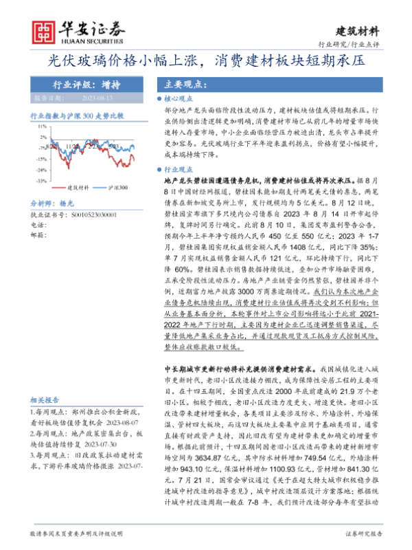 【华安证券】【20230813】建筑材料:光伏玻璃价格小幅上涨,消费建材板块短期承压-21页