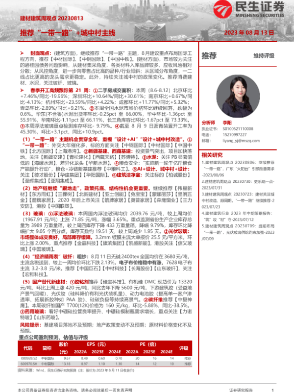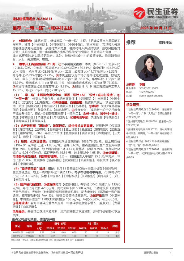 【民生证券】【20230813】建材建筑周观点:推荐“一带一路”+城中村主线-23页