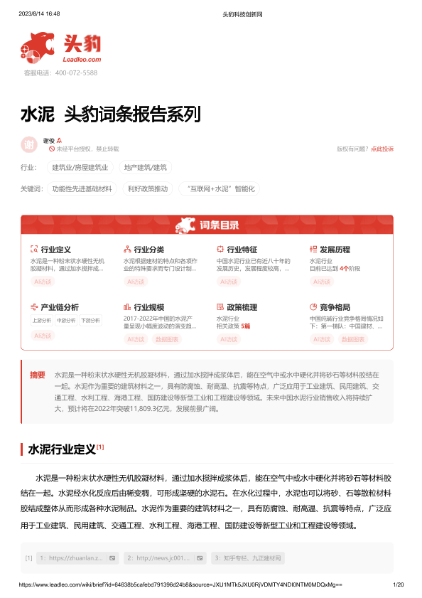 【头豹研究院】【20230814】水泥 头豹词条报告系列-20页