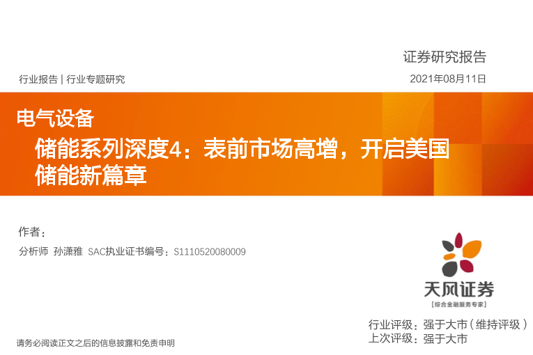【天风证券】【20210811】电气设备行业储能系列深度4:表前市场高增,开启美国储能新篇章-23页