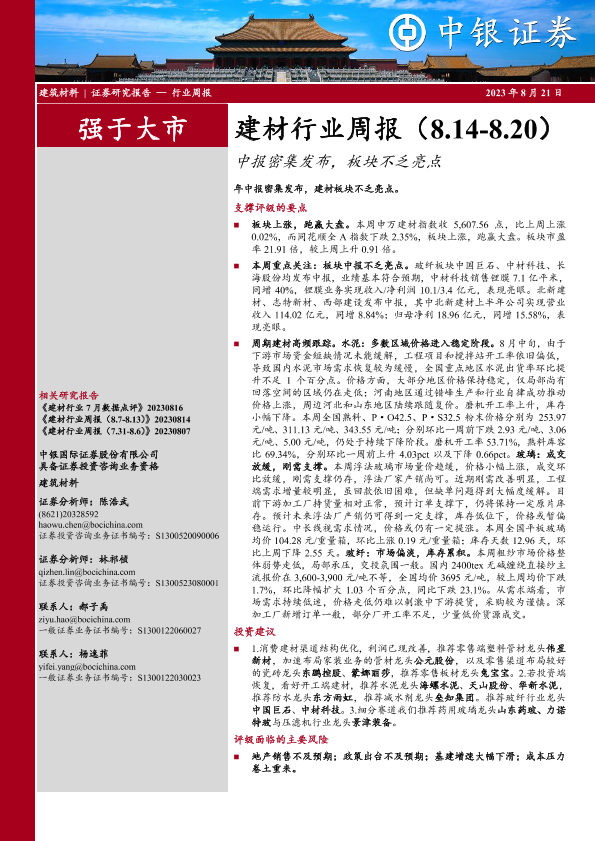 【中银证券】【20230821】建材行业周报:中报密集发布,板块不乏亮点-21页