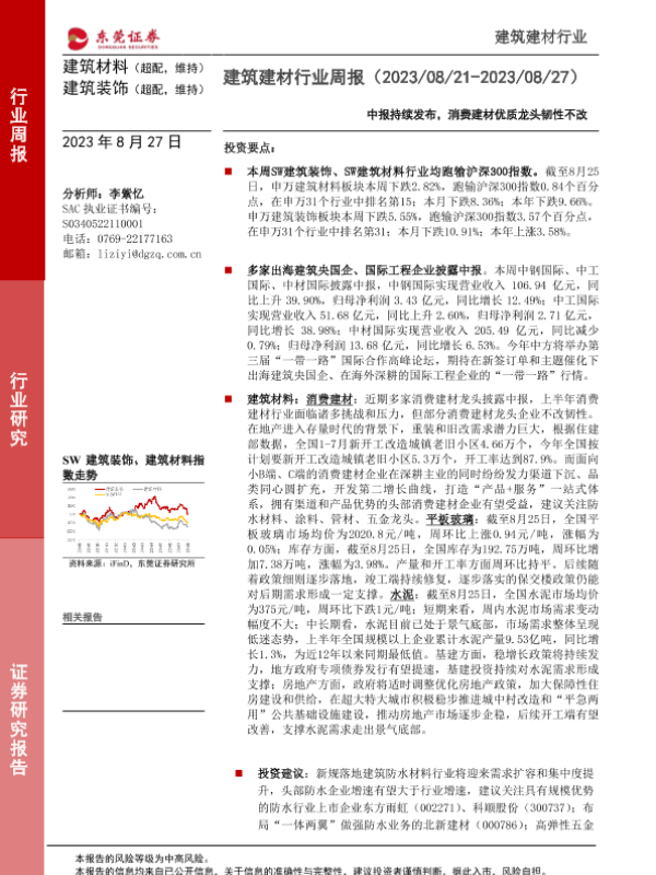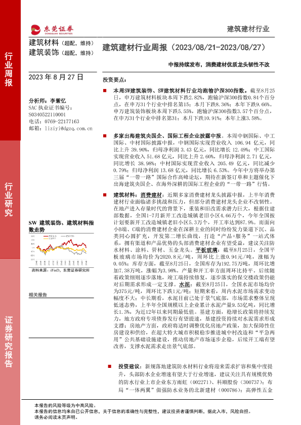 【东莞证券】【20230827】建筑建材行业周报:中报持续发布,消费建材优质龙头韧性不改-16页