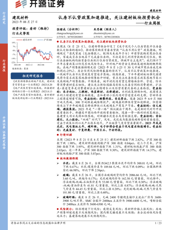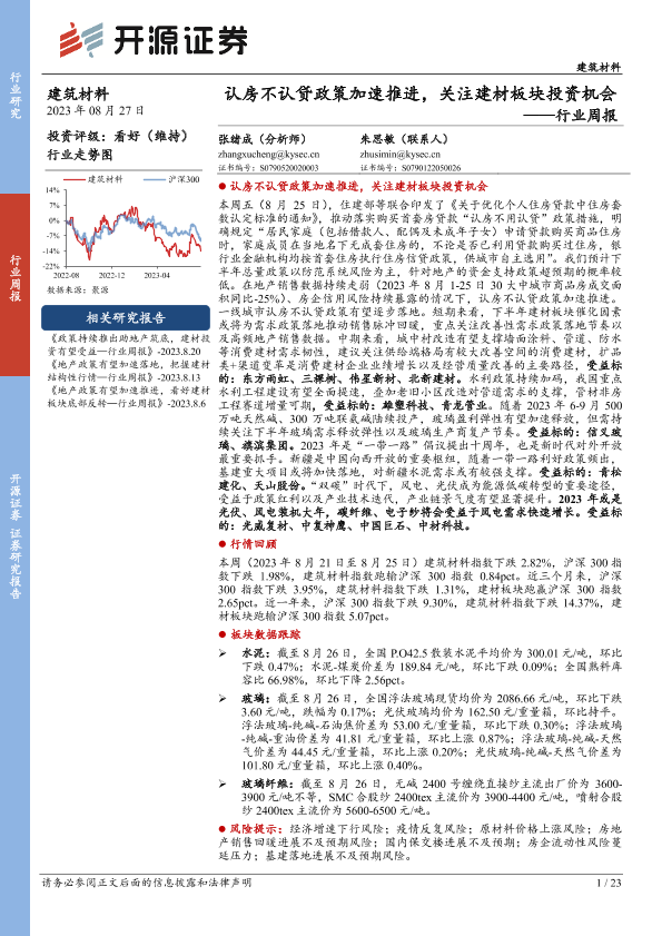 【开源证券】【20230827】建筑材料行业周报:认房不认贷政策加速推进,关注建材板块投资机会-23页