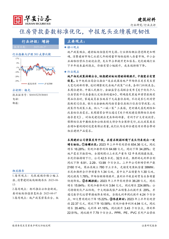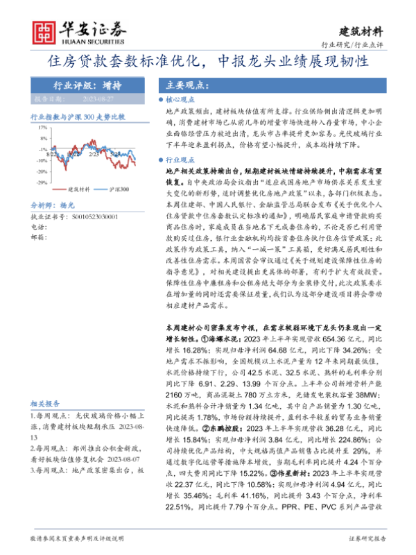 【华安证券】【20230827】建筑材料行业点评:住房贷款套数标准优化,中报龙头业绩展现韧性-23页