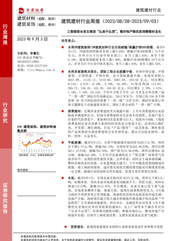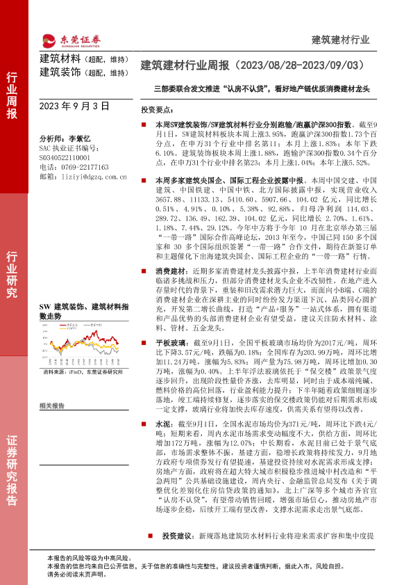 【东莞证券】【20230903】建筑建材行业周报:三部委联合发文推进“认房不认贷”,看好地产链优质消费建材龙头-16页