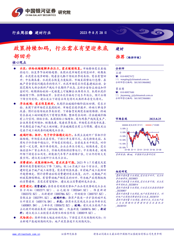【银河证券】【20230828】建材行业周报:政策持续加码,行业需求有望迎来底部回升-13页