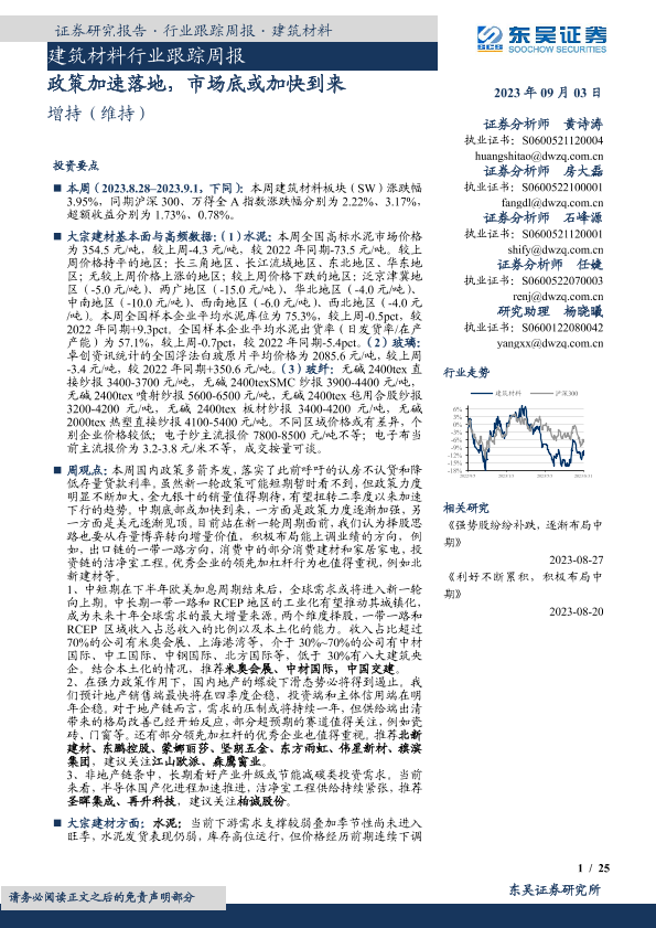 【东吴证券】【20230903】建筑材料行业跟踪周报:政策加速落地,市场底或加快到来-25页