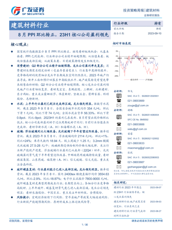 【广发证券】【20230910】8月PPI环比转正,23H1核心公司盈利领先-30页