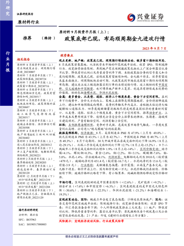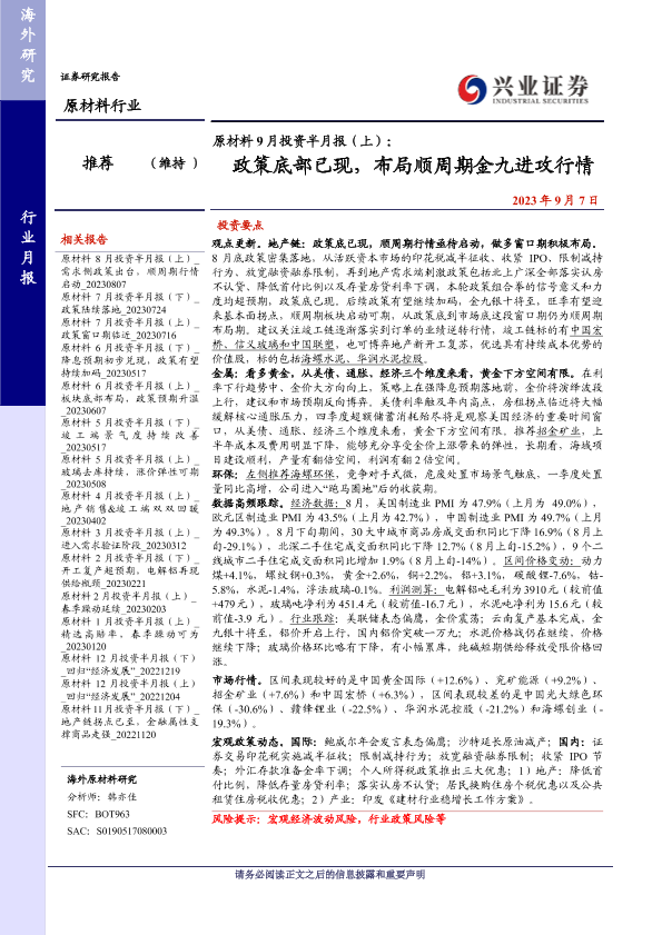 【兴业证券】【20230907】原材料9月投资半月报(上):政策底部已现,布局顺周期金九进攻行情-26页