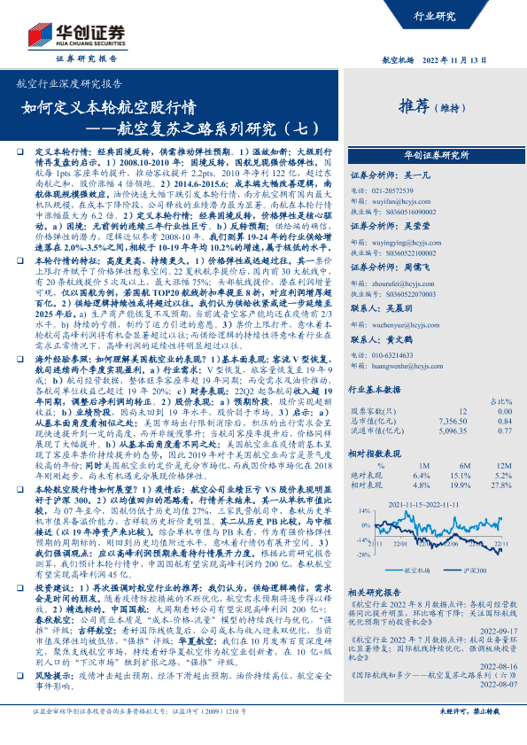 【华创证券】【20221113】航空行业深度研究报告:航空复苏之路系列研究(七),如何定义本轮航空股行情-35页