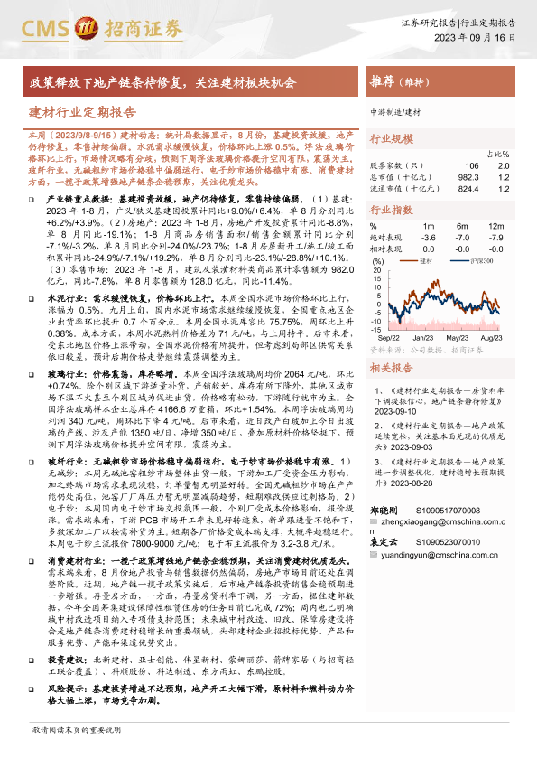 【海通证券】【20230916】建材行业定期报告:政策释放下地产链条待修复,关注建材板块机会-25页