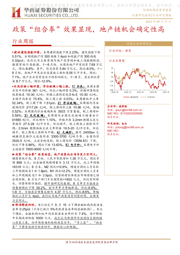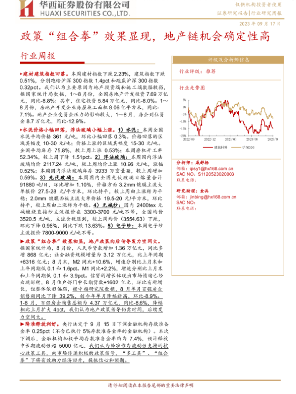 【华西证券】【20230917】建筑材料行业周报:政策“组合拳”效果显现,地产链机会确定性高-16页