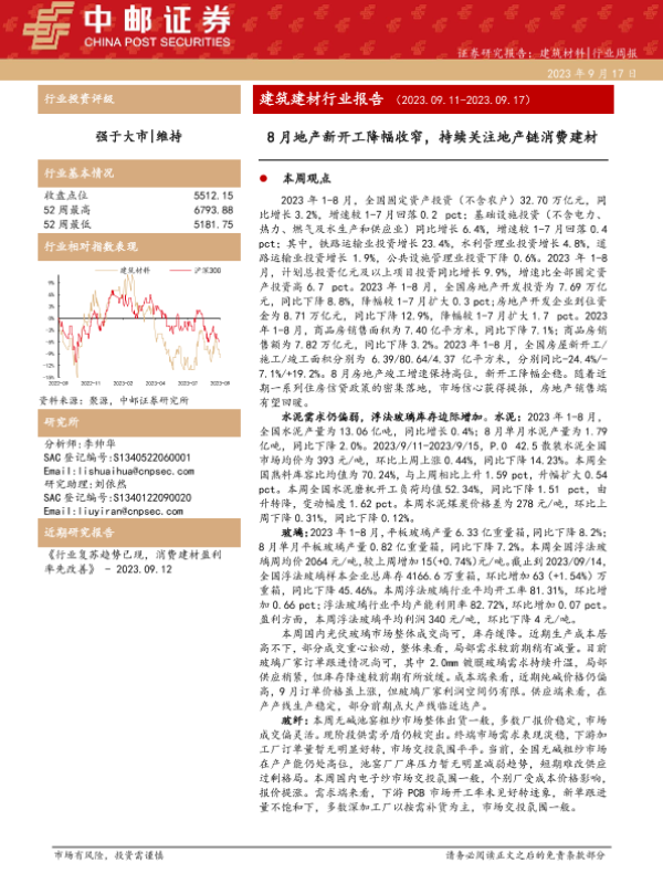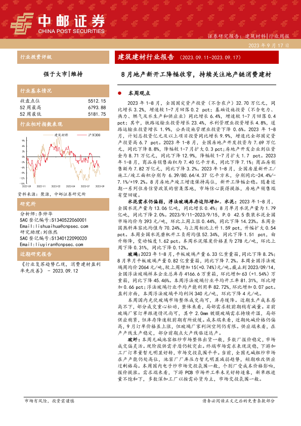 【中邮证券】【20230917】8月地产新开工降幅收窄,持续关注地产链消费建材-24页