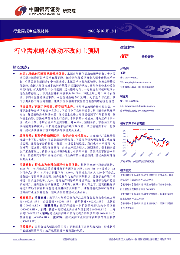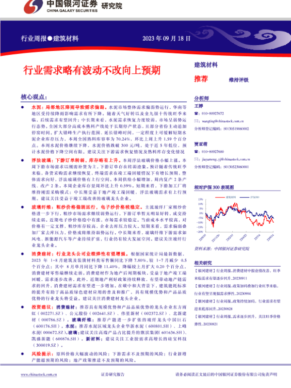 【银河证券】【20230918】建筑材料行业周报:行业需求略有波动不改向上预期-12页