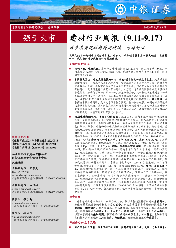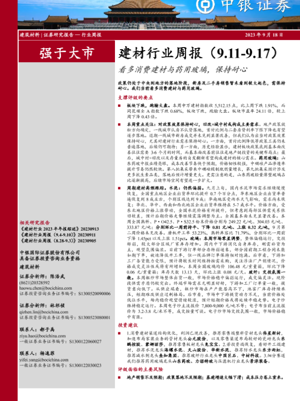 【中银证券】【20230918】建材行业周报:看多消费建材与药用玻璃,保持耐心-21页