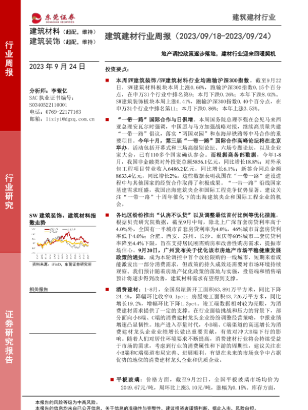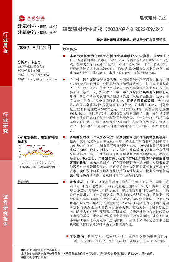 【东莞证券】【20230924】建筑建材行业周报:地产调控政策逐步落地,建材行业迎来回暖契机-15页