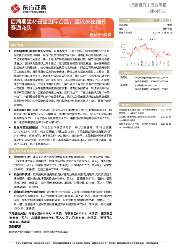 【东方证券】【20230926】建材行业周报:后周期建材安全边际凸显,建议关注细分赛道龙头-17页