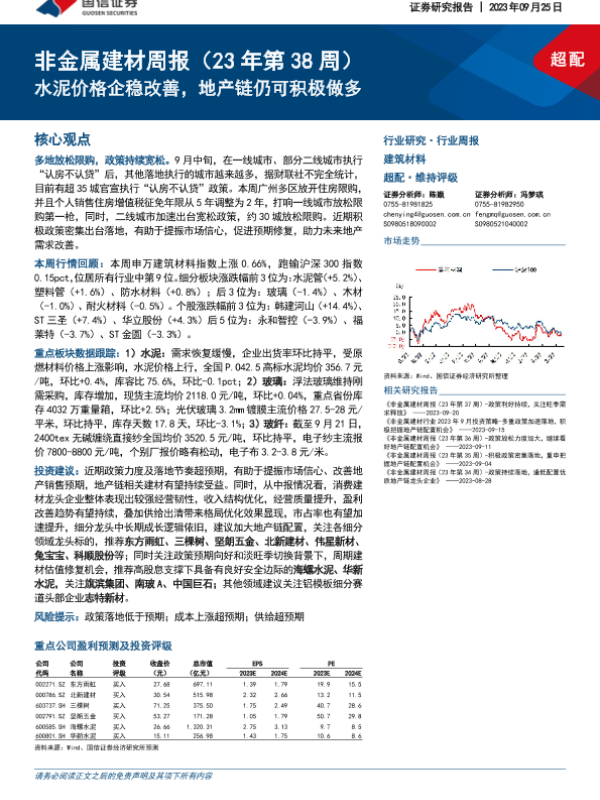 【国信证券】【20230925】非金属建材周报:水泥价格企稳改善,地产链仍可积极做多-22页