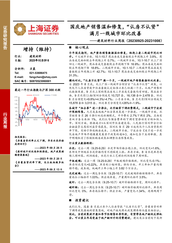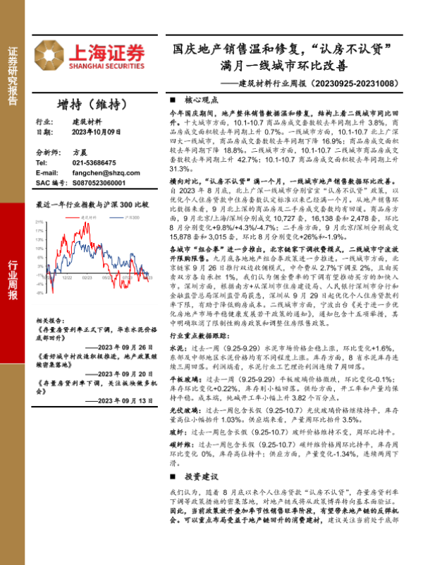 【上海证券】【20231009】建筑材料行业周报:国庆地产销售温和修复,“认房不认贷”满月一线城市环比改善-16页