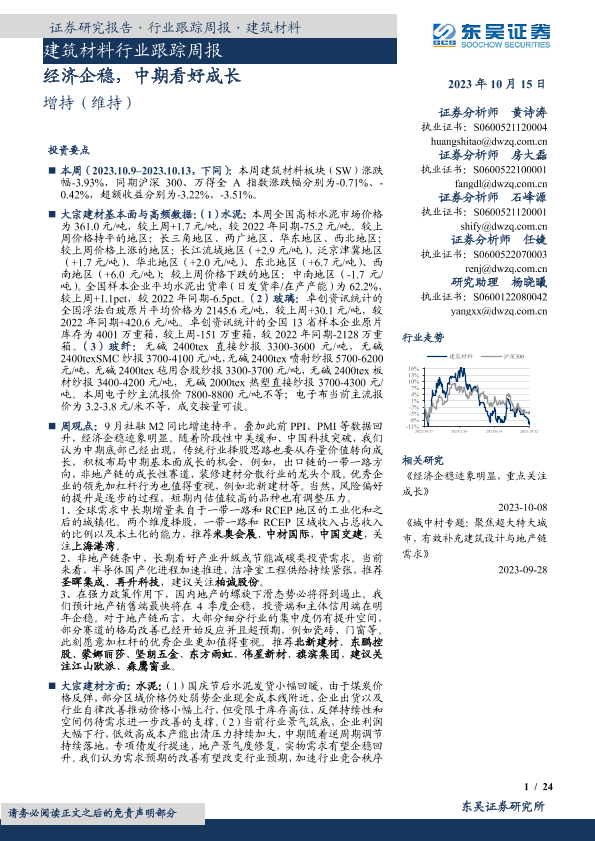 【东吴证券】【20231015】建筑材料行业跟踪周报:经济企稳,中期看好成长-24页