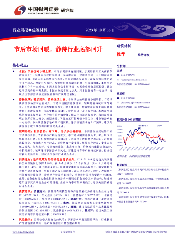 建筑材料 水泥 浮法玻璃 消费建材 玻璃纤维