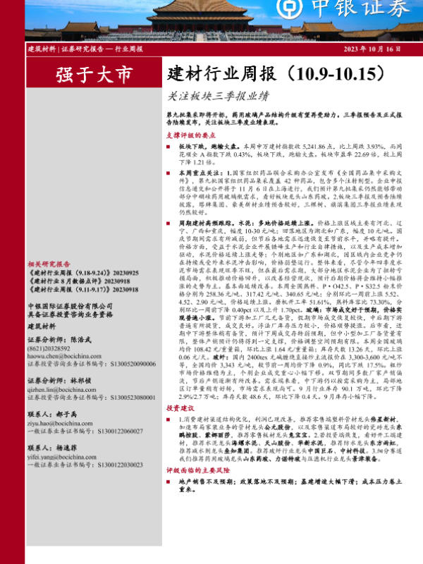 【中银证券】【20231016】建材行业周报:关注板块三季报业绩-21页